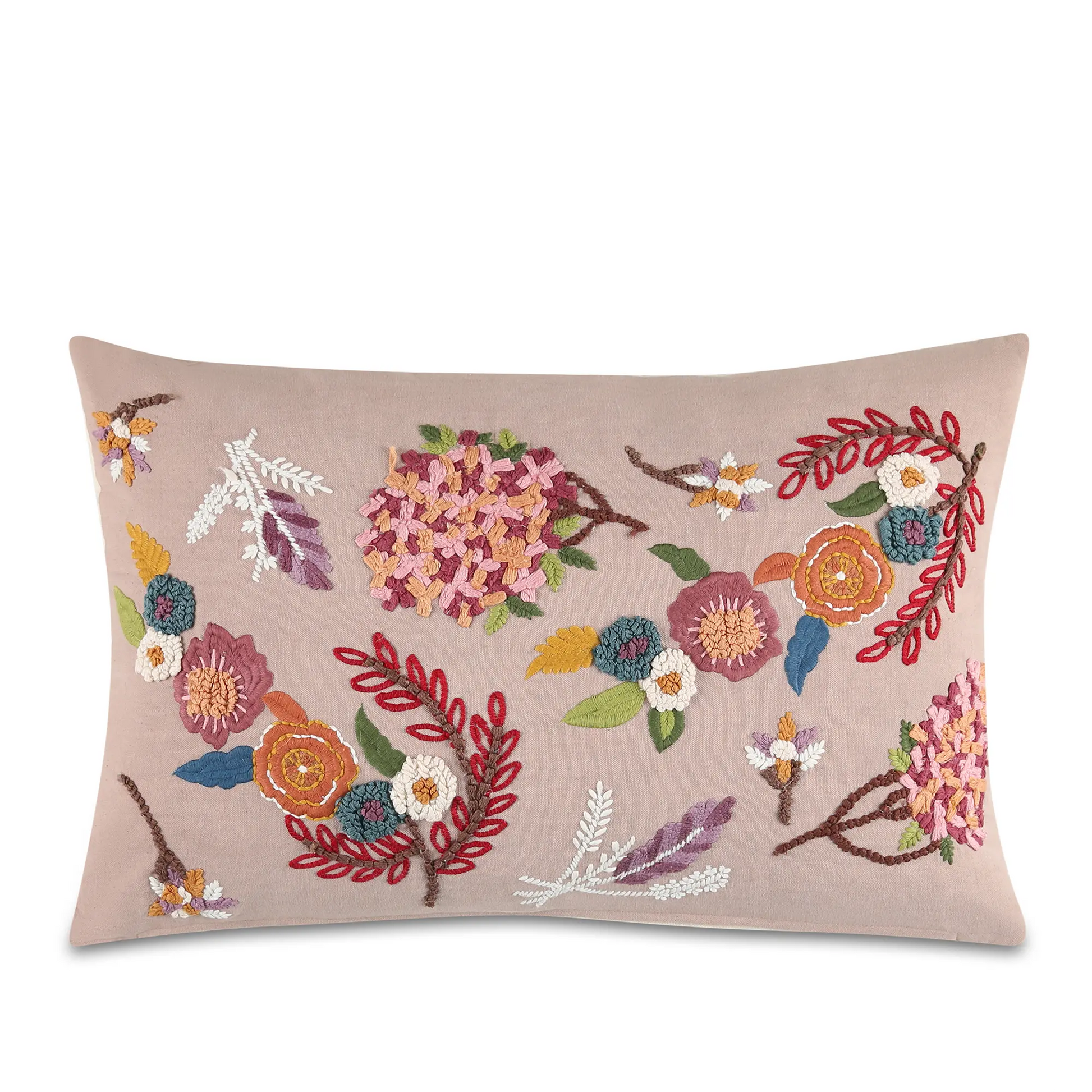 כרית רקומה מכותנה איכותית עם דוגמאות של פריחה וצבע - כמה סטייל בכרית אחת.