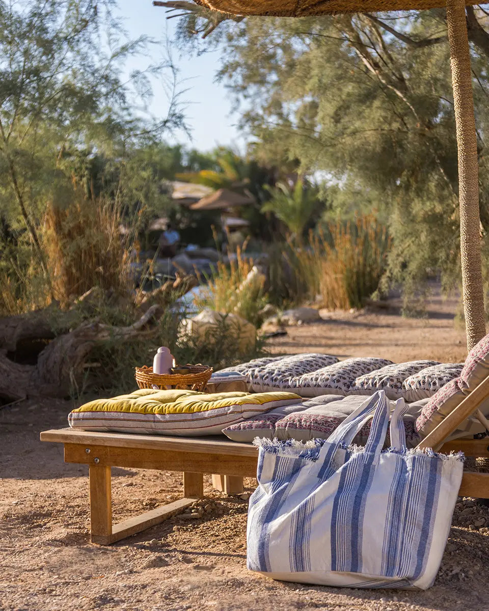 ידיות התיק רחבות ומעוצבות לנשיאה נוחה במיוחד על הכתף, גם כשהתיק מלא. עמידות הבד, יחד עם העיצוב הנינוח, הופכים אותו לבחירה מושלמת לכל תרחיש: ליום בילוי בים התיכון, למפגש בפארק או לסידורים בעיר. זהו הפריט שמשלב באופן מושלם בין אופנה לפרקטיות.