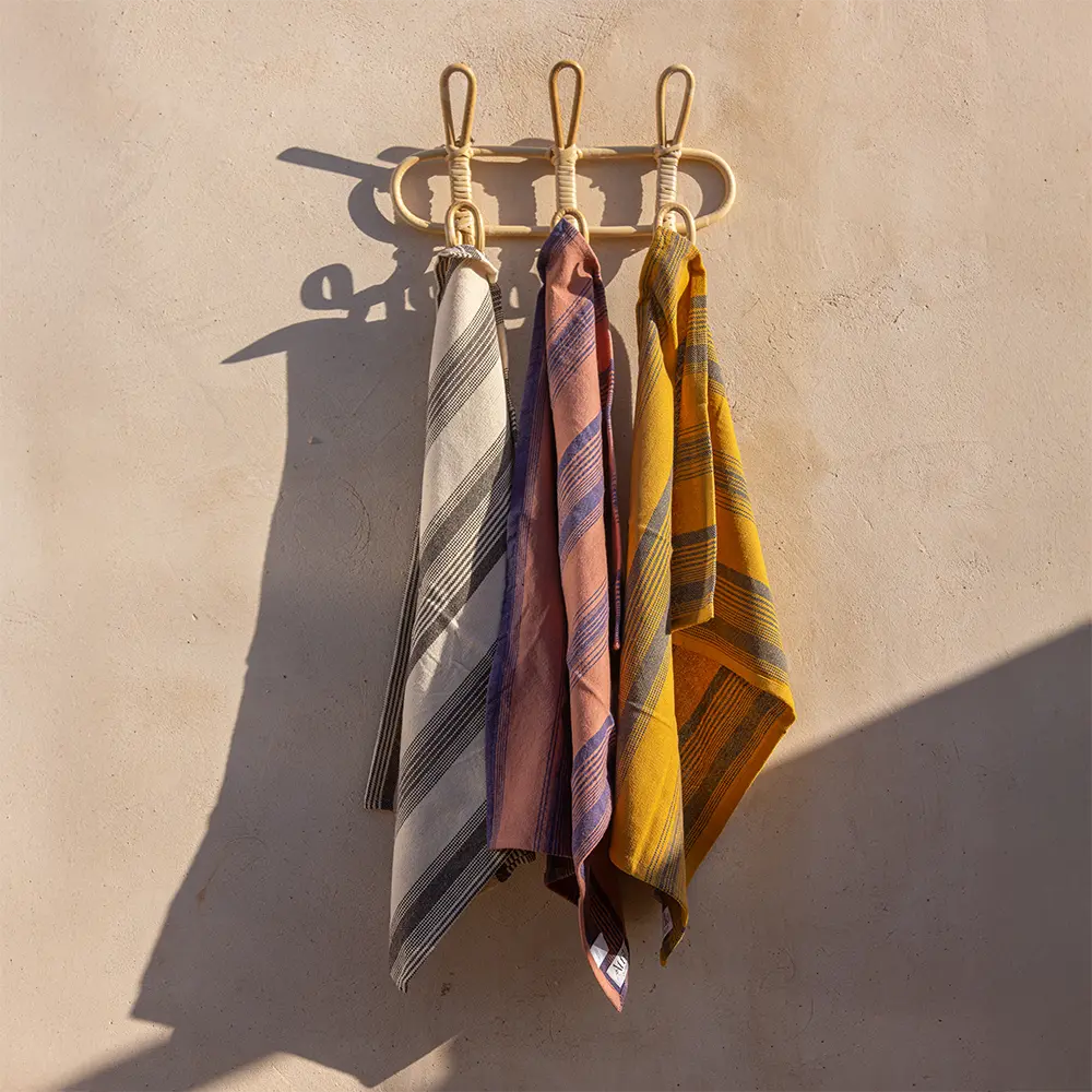 המגבות עשויות מ-100% כותנה משובחת בעלת כושר ספיגה מעולה. טכניקת ה-Yarn Dyed (צביעה ישירה של החוטים) מבטיחה צבעים חיים, עמידים בפני דהייה, ויוצרת מראה פסים עמוק ואלגנטי. האריגה הצפופה מעניקה עמידות גבוהה לאורך זמן.